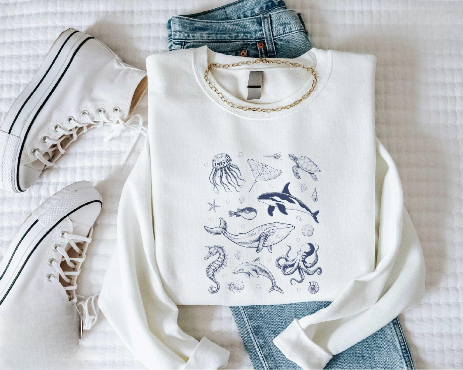 Portez ce Sweater avec fierté, car vous savez qu'un pourcentage de votre achat sert à protéger la vie marine. Une partie sert à nettoyer nos océans et une autre partie sert à sauver les animaux marins des dangers des déchets plastiques.